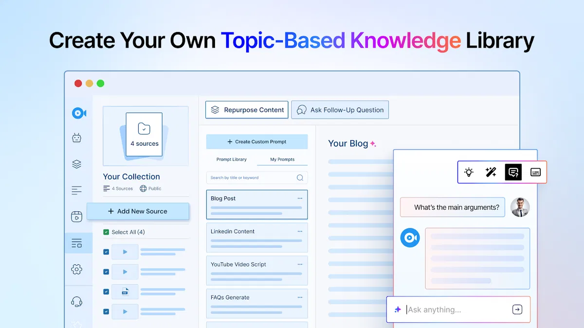 - Arrange your sources into collections based on topics, turning your research into a reusable content resource